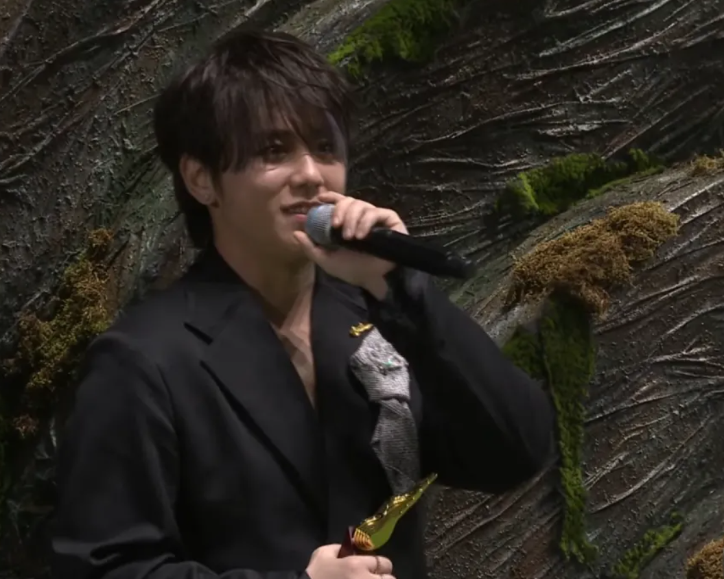 The 24-year-old HK singer only said seven words when accepting his award.