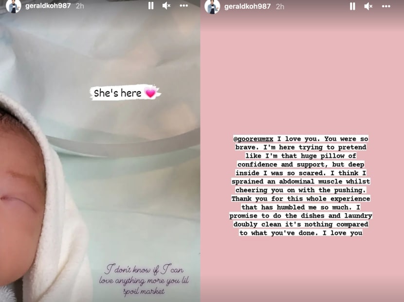 “I think I sprained an abdominal muscle whilst cheering you on with the pushing,” Gerald continued. “Thank you for this whole experience that has humbled me so much. I promise to do the dishes and laundry doubly clean [because] it’s nothing compared to what you’ve done. I love you.”