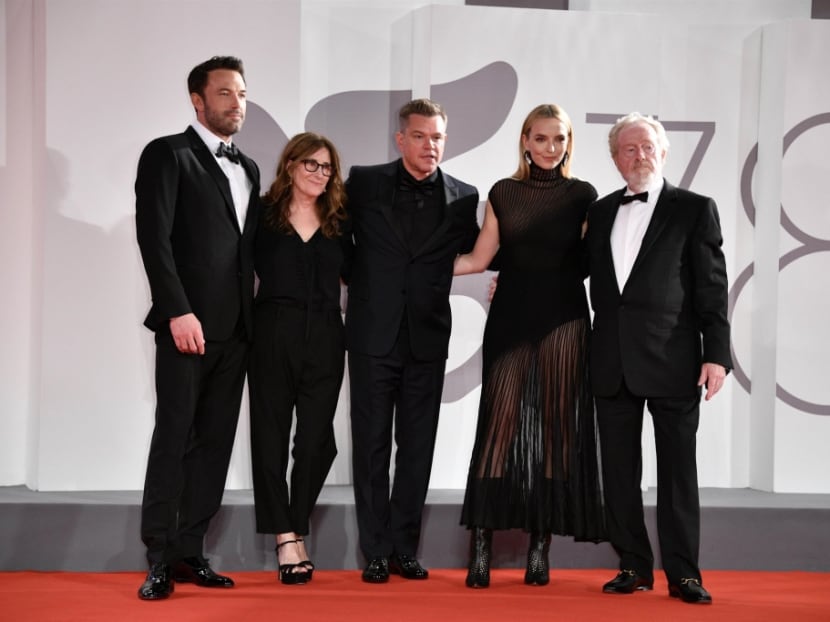 Team effort: Ben Affleck with (from left) co-writer Nicole Holofcener, co-stars Matt Damon and Jodie Comer, and director Ridley Scott at the world premiere of 'The Last Duel' at the 78th Venice Film Festival.