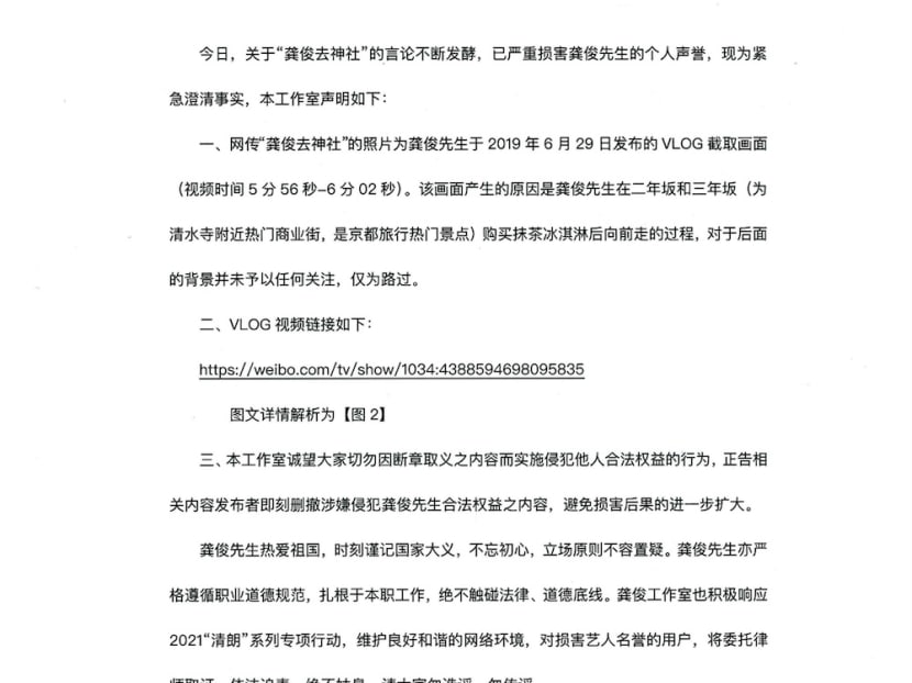 Emphasising that Gong Jun “loves the motherland”, his company said that the whole issue has been taken out of context and is a violation of his legal rights.