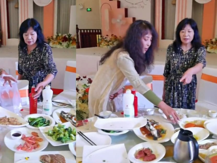 In a clip that was circulated on the internet, Qinqin was seen going around a table after the banquet and dumping some of the leftover food into plastic bags to take home.