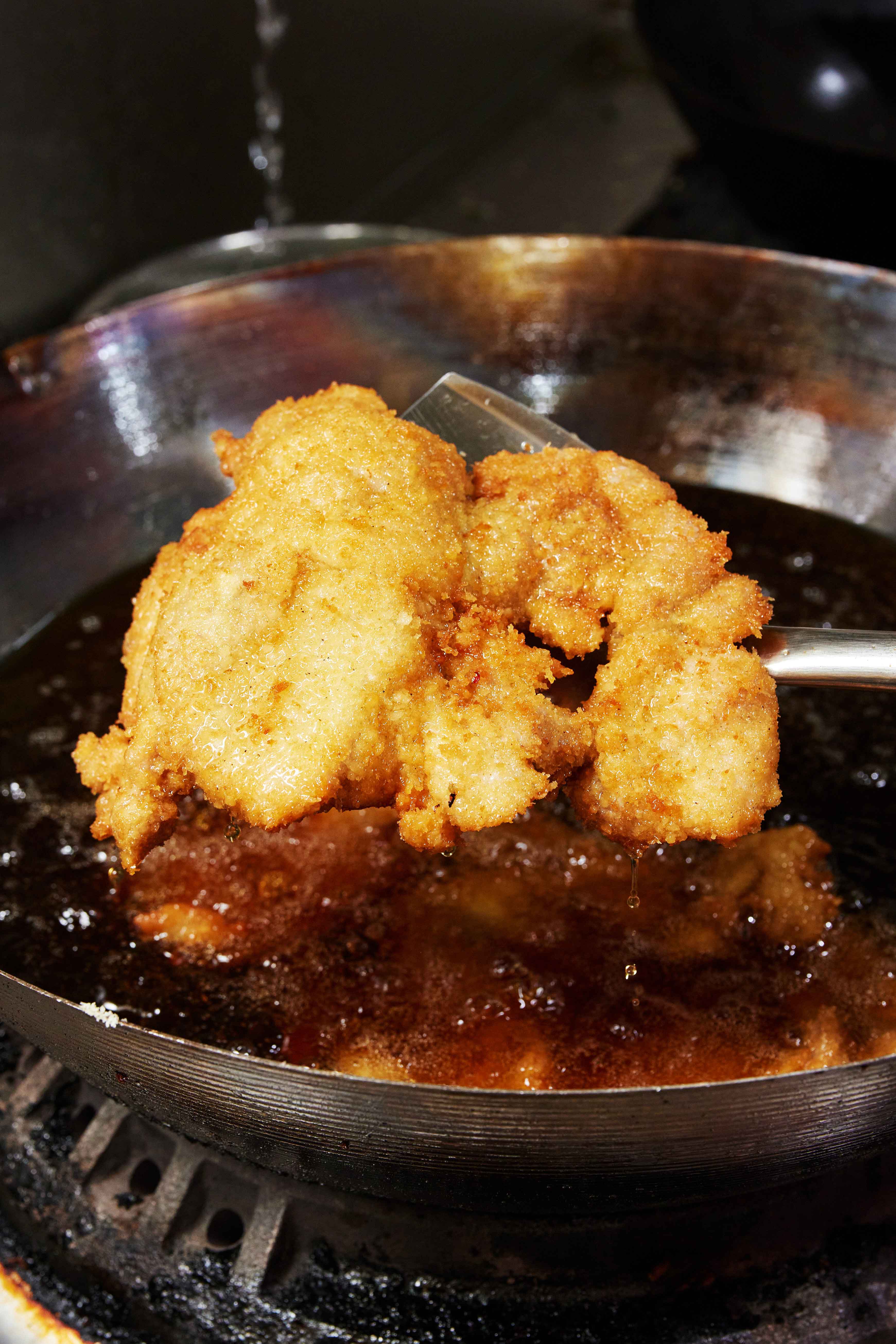 But from the first mouthful, it’s clear this isn’t exactly DTF-style egg fried rice – it’s a lot drier, which is how Max likes his fried rice. Instead of fluffy and light, the short-grain rice is firm and beautifully distinct, with eggy punctuations in each mouthful. The cutlet is a couple of shades lighter than DTF’s chestnut-coloured pork chops – in fact, Max’s version reminds us a bit of a McChicken patty – but boasts an unexpectedly sophisticated treatment involving an overnight marinade in a secret spice mix, a bath in warm oil till cooked, then a deep-fry at a high temperature to crisp the exterior. Though some may find it a touch drier and leaner than the cutlets at other places, it’s still tender and savoury, and sans the oily mouth when you’re done.