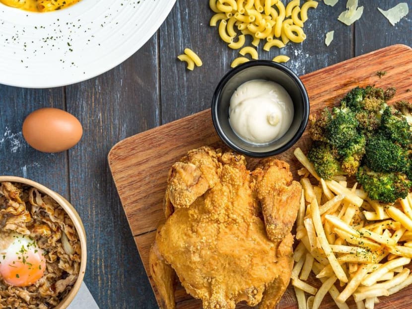 Not content with acting and running a curtains and blinds business, Mediacorp artiste Benjamin Tan has added F&B to his portfolio. The entrepreneurial 28-year-old recently invested a mid five-figure sum for shares in fusion Western food stall Chef Bui Bui, which opened on September 1 at the Koufu food court at Enterprise One in Kaki Bukit. There’s also another outlet at Lau Pa Sat, which opened in April, before Ben joined the biz. Chef Bui Bui is the casual spin-off of 24-hour café Tittle Tattle, owned by Ben’s pal-turned-biz partner, Eric Lee. Just who is this “bui bui” (Hokkien for “fat fat”) chef? Well, turns out it’s not a person, but a dish. Chef Bui Bui aka 'Pang Pang Ji' (fat chicken) in Chinese is named after their signature fried chicken.
