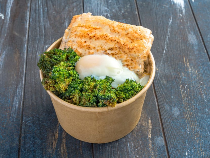Other signature items include salmon mentaiko rice bowl and lok lok-style fried broccoli, which is dusted with seasoning and served with all their rice bowls and mains.
