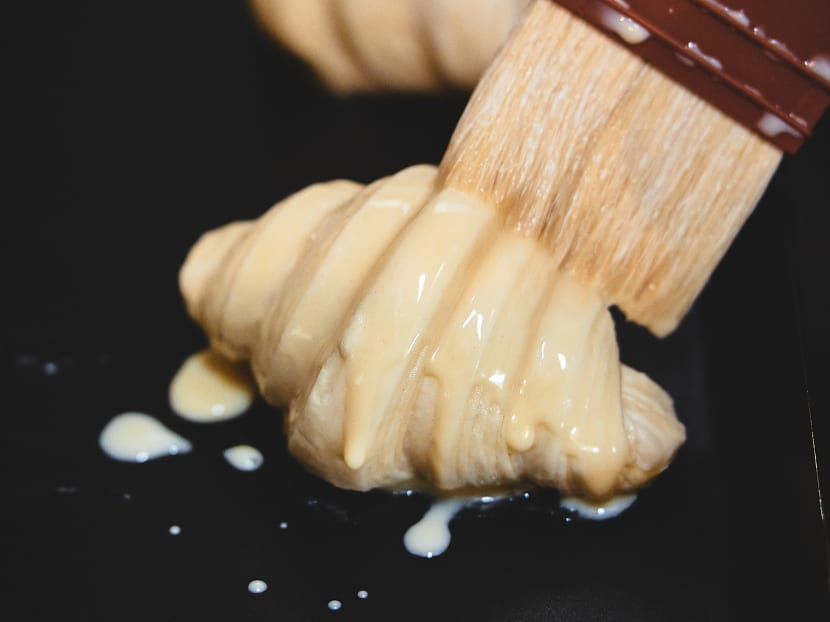 Prior to working at Ollella, Wei Jing (right in pic) spent three years at defunct French patisserie chain Antoinette as a baker, where she made pastries and dough for baguettes. These days, she mainly churns out kuehs and cooks savoury dishes like nasi lemak at her current job. But her boss, Ollella founder Marcella Tanuwijaya (left in pic), 35, noticed her talent in baking “really good” croissants. “I asked her what she really wanted to do, and she said croissants,” Marcella shares with 8days.sg.