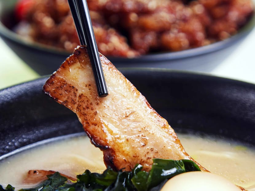 The pork belly chashu fares better. It’s simmered with carrot, onion and shoyu for two-and-a-half hours, sliced and finished with a blowtorch – the result is tender, smoky, delish pork that melts in the mouth. We’d recommend getting it a la carte ($1 a slice) rather than with the ramen.