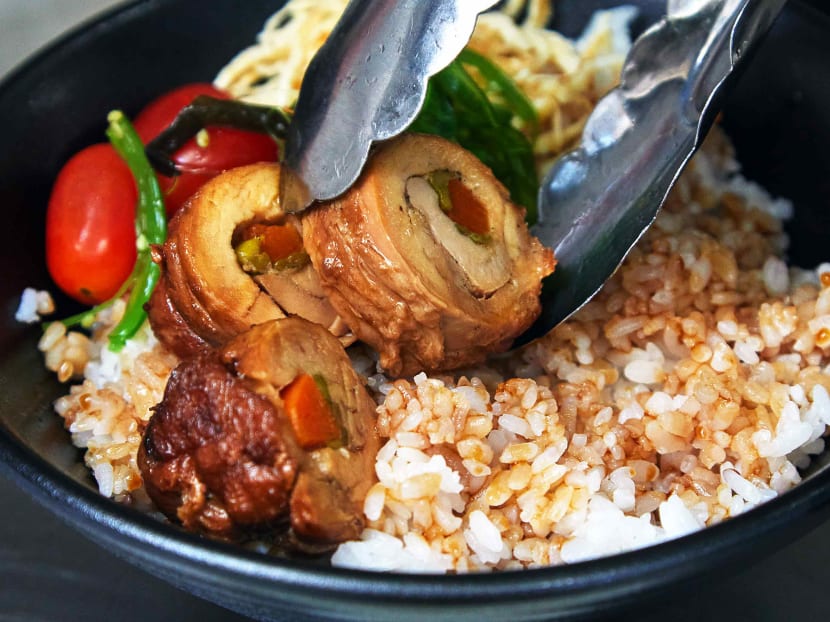 Billion Bowls’ signature dish show’s the chef’s restaurant kitchen chops. A chicken roulade fashioned from deboned chicken drumstick, wrapped around carrot and asparagus, is pan-fried before being simmered in teriyaki sauce till meltingly tender.