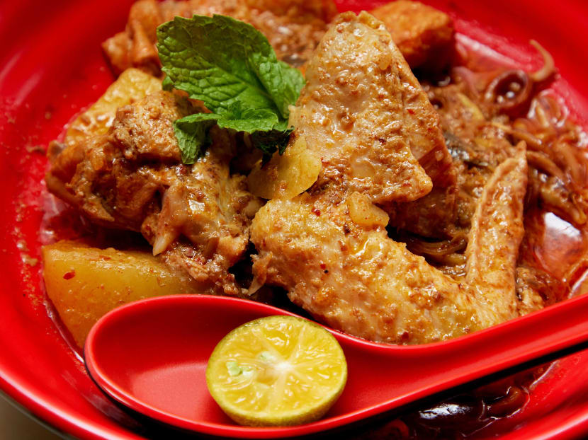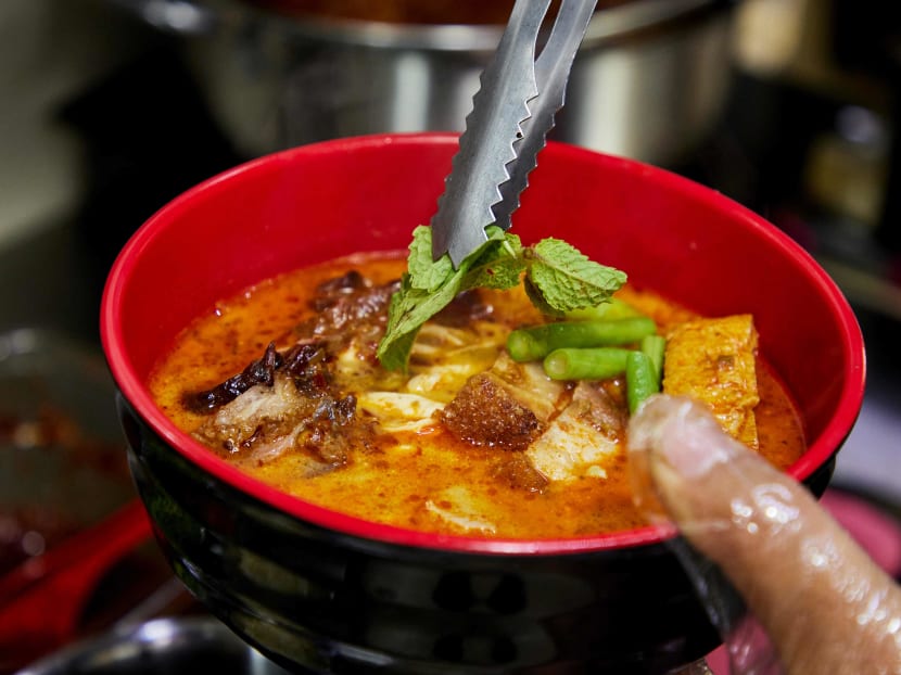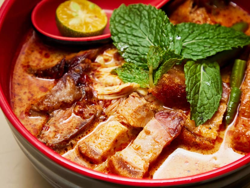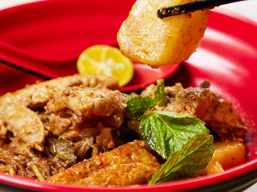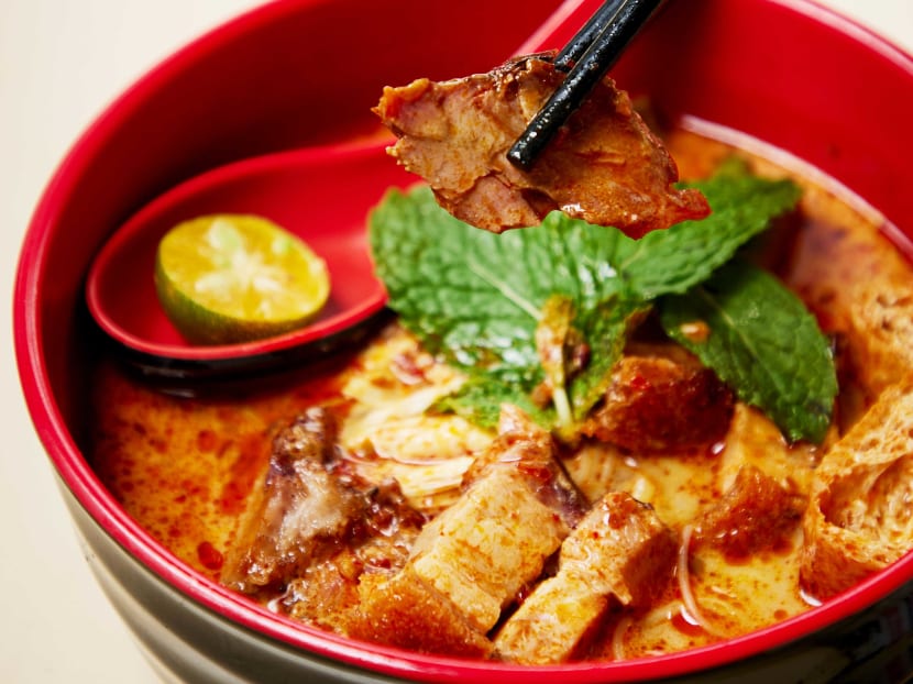 While they look similar, the noodles here do not taste like the Singapore-style curry noodles you’ll find at Hong Lim Food Centre. The spices are way more robust (closer to Indian curries, in our opinion), and the soup is richer and more savoury than the latter. You can also identify Ipoh-style curry noodles from their toppings, which typically include roast pork, char siew, chicken and pig skin.