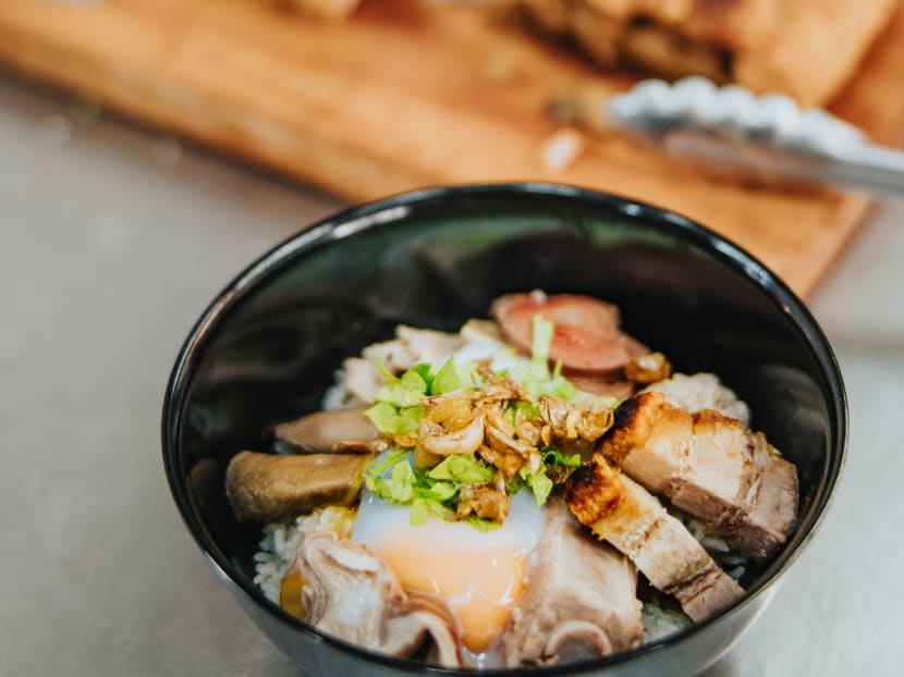 Moo Station’s offerings are lean and straightforward: Two sizes of their Signature Pork Dry Rice Porridge (which comes with slightly different toppings) starting at $5; Pork Porridge ($4.50) and accompaniments like Crispy Pork Belly ($6) and Fried Pork Skin ($1.50). There’s even an unorthodox Onsen Egg add-on ($0.80).