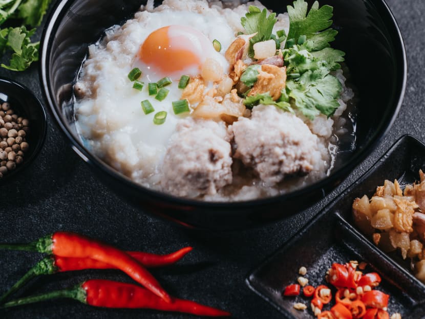 A dish that Sandy used to make for her husband and son at home crafted from Jasmine rice and pork-bone broth, with added heft by way of an egg, minced meat and handmade meatballs.