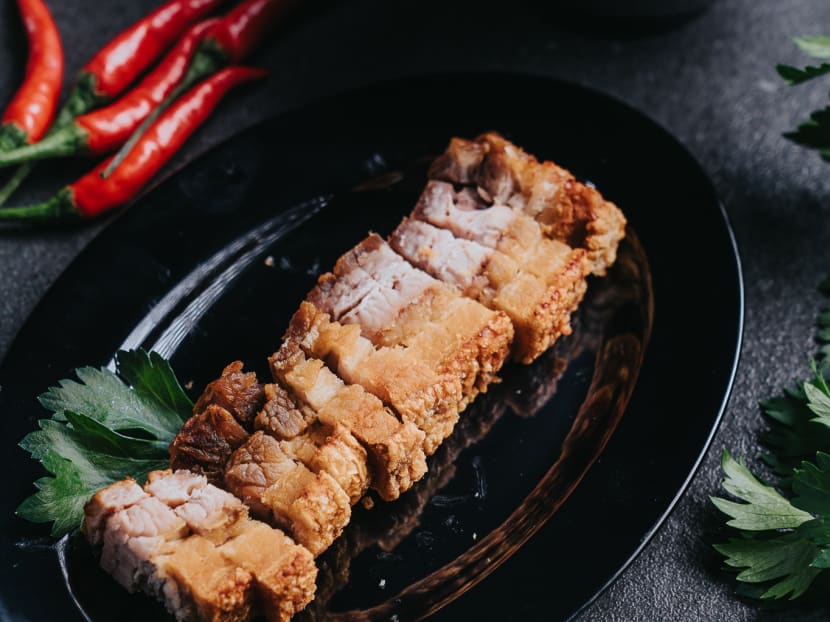 Moo Station’s crispy pork belly is marinated, roasted then deep-fried for optimum crispiness, Sandy tells us. It’s also served alongside a nan jim (Thai-style chill sauce) dip (not pictured).