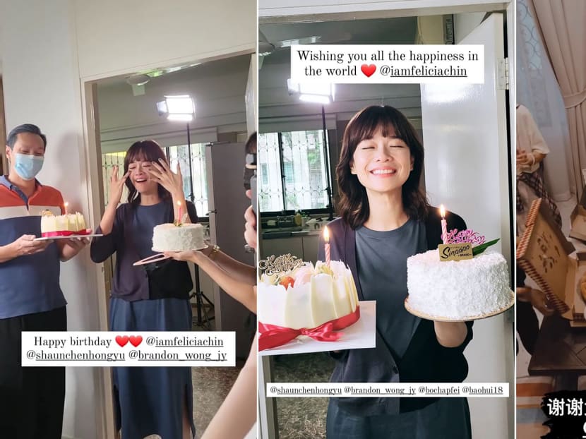 Yummy factor: The cast of upcoming drama Leave No Soul Behind surprised Felicia with not one but two whole cakes for her birthday (Oct 24), as well as a celebratory feast of fried chicken and pizzas. How sweet.