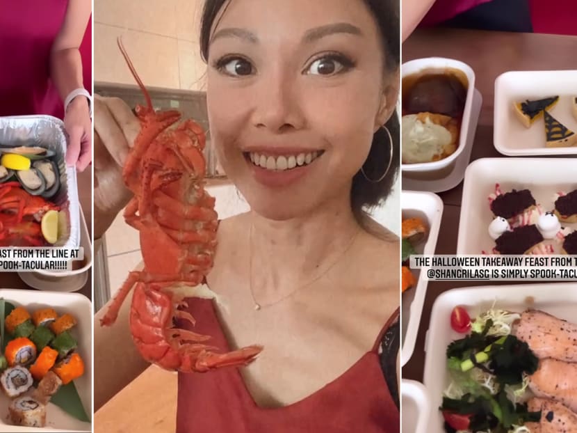 Yummy factor: Jamie and her family enjoyed a Halloween takeaway feast courtesy of Shangri-La Singapore, comprising plenty of devilicious eats like Fire Eater Butter Chicken with naan and papadam, and desserts decorated with cobwebs and more. Her favourite, however, seemed to be the seafood platter with prawns, oysters and lobsters galore.