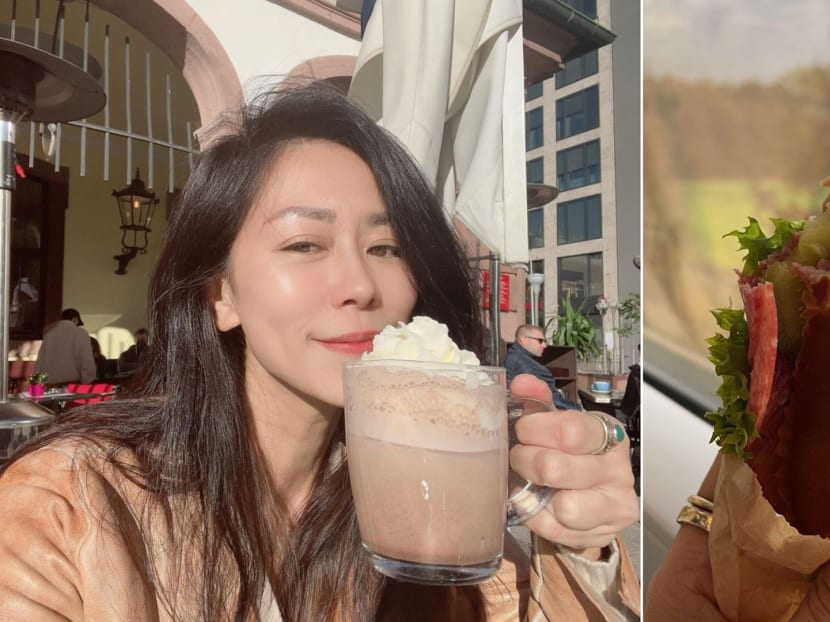 Yummy factor: Michelle, who is in Germany to host livestream sales with her fellow Mdada hosts, including Pornsak and Shane Pow, took the time to relax while sipping on a huge mug of hot chocolate topped with whipped cream. Perfect choice for the chilly weather, especially with a simple salami sandwich with lettuce and pickles.