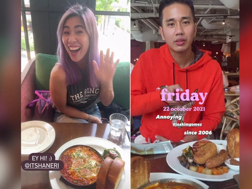 Yummy factor: The Singapore Idol alums met up at all-day breakfast spot Wild Honey for hearty, mouthwatering eats. Daphne went for the Tunisian, a spicy shakshuka dish with chorizo, eggs and brioche toast, while Joakim had a classic English breakfast with poached eggs, streaky bacon, sausages and more. Yum.