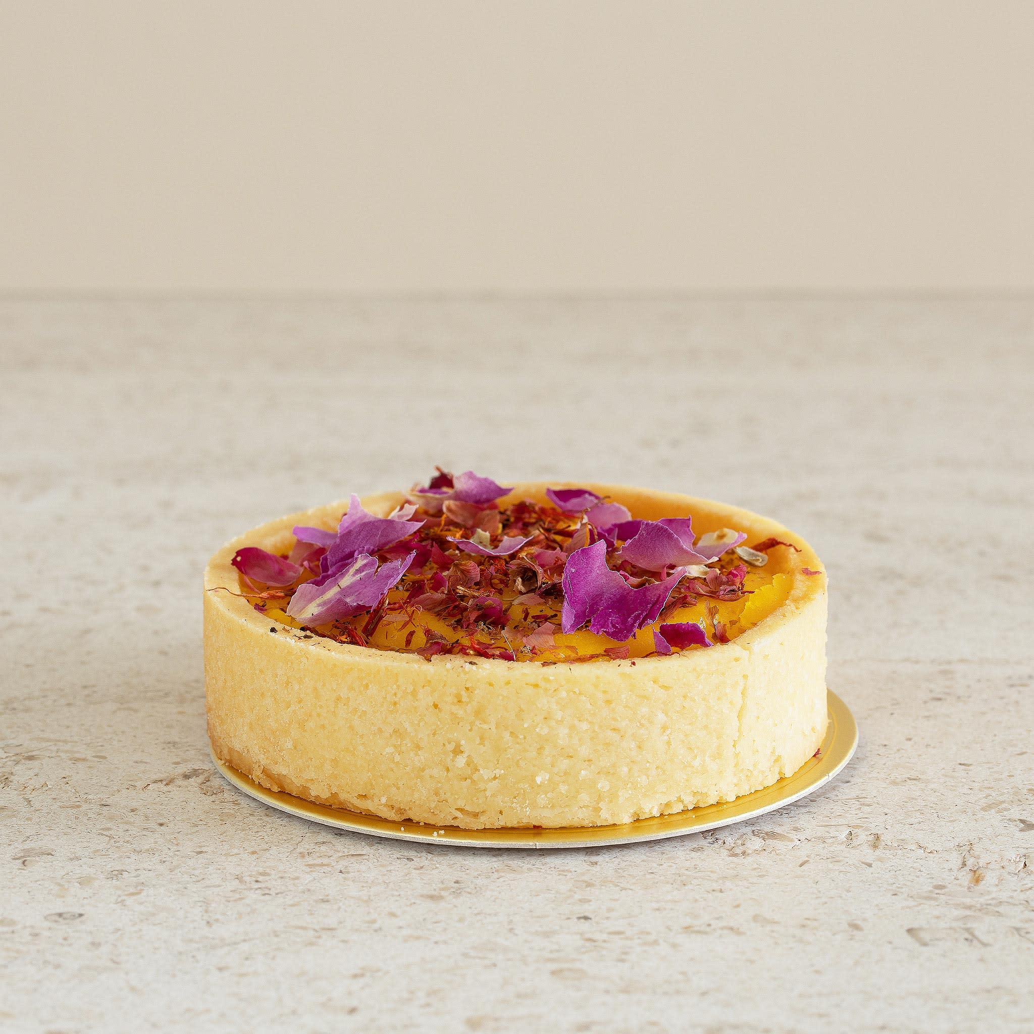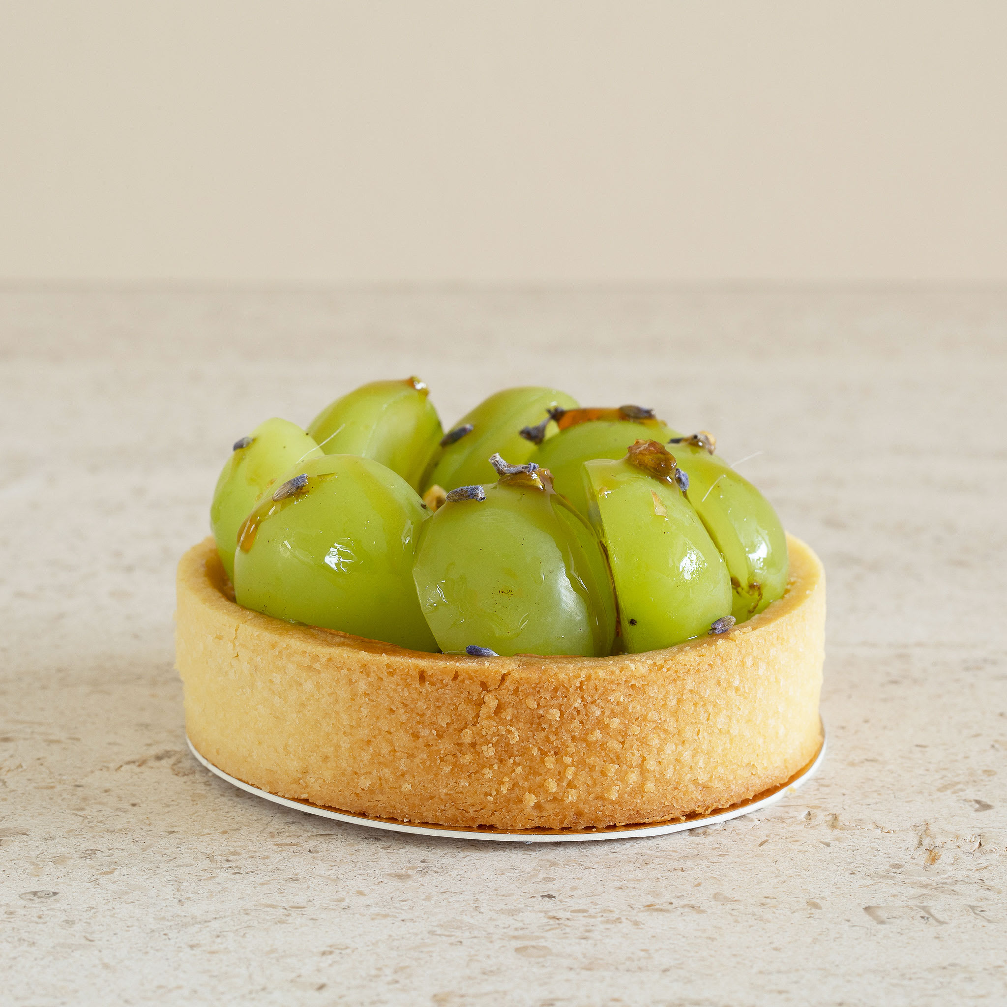 An artfully decorated crown of grapes (chosen seasonally), spotted with lavender and lashings of raw honey, atop a tangy yoghurt and cheese custard core.