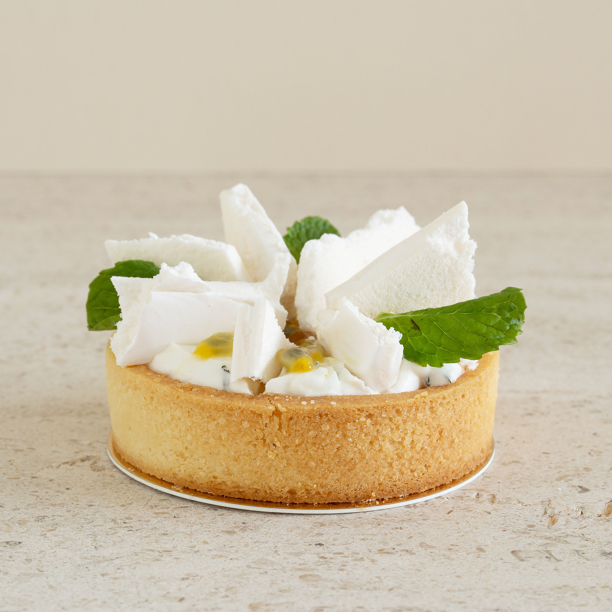 A whimsical reimagining of the mysterious British landmark in tart form, with meringue chips and mint leaves replacing prehistoric stone slabs embedded in a vanilla-and-passion-fruit custard.