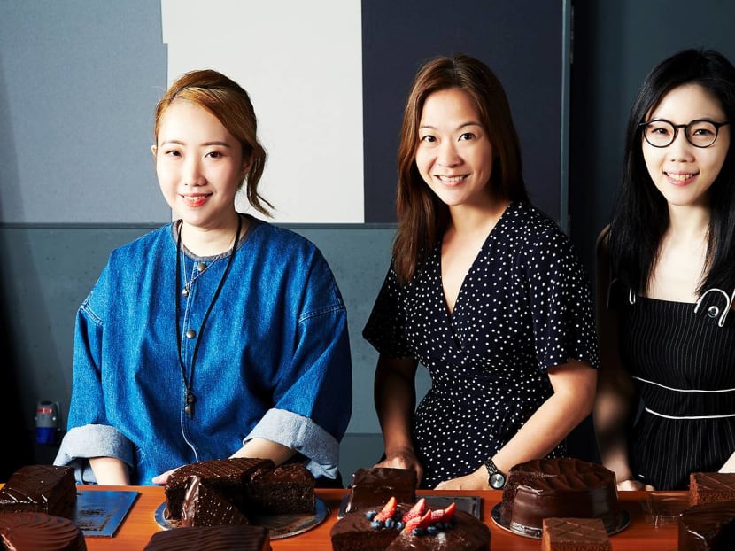 (From right) Florence Fong, senior food editor of 8 DAYS and avid home baker; Annette Tan, food writer, cook behind modern Peranakan private diner Fat Fuku and creator of the 8 DAYS Lana-Inspired Chocolate Fudge Cake recipe; Yip Jieying, writer, 8 DAYS.