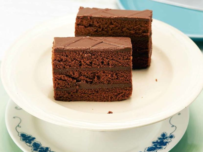 Unlike typical angmoh-style chocolate fudge cakes, which often comprise a denser butter-based sponge or buttermilk chocolate cake and heavier, sugary frosting whipped up with butter or cream, the Lana ilk are defined by a moist, delicate-textured chocolate chiffon baked with oil, enrobed in a coat of chilled jelly-esque frosting made using ingredients like mung bean flour, gelatine and often little or no dairy products. The light, easy-to-eat cake seems unique to this part of the world — it certainly isn’t common in the West (other than Hawaii in the ’60s apparently, where the recipe came from), or even Japan.