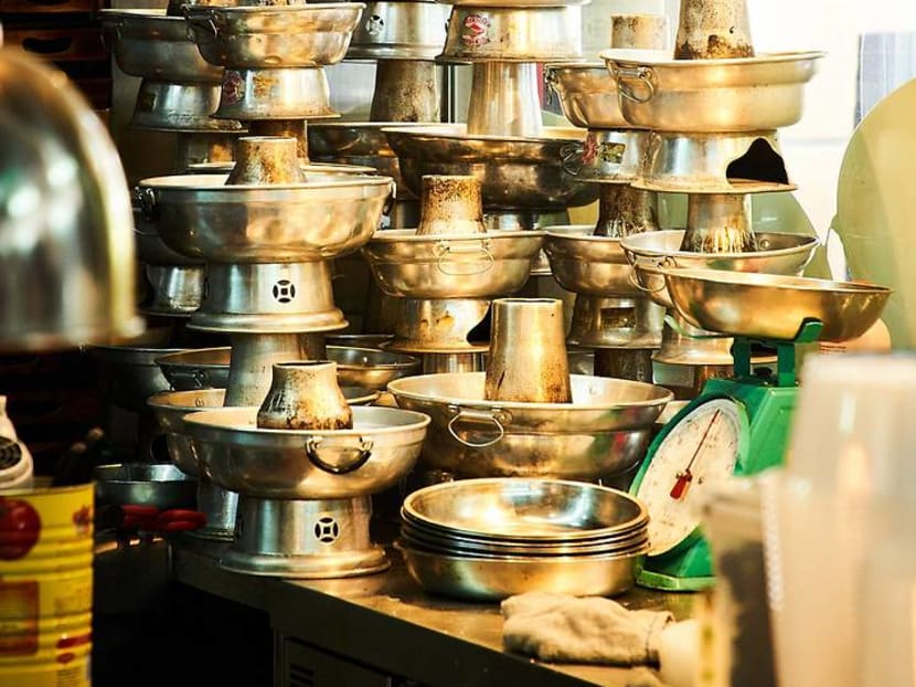 The waitress sets the steamboat on the table, the smell of burning charcoal trailing softly in her wake. This is Lai Bao’s signature dish, inspired by popular charcoal fish head steamboats from the 1960s and based on “grandma’s secret recipe”. It comes in two variants, made with either grouper ($15 to $35) or snapper ($10 - $24). We order the grouper version and large chunks of the fish, with bones and skin, swim alongside cherry tomatoes, Chinese cabbage, black fungus, yam sticks, and tofu in a collagen soup that’s been simmered over charcoal for over 10 hours. The grouper is fresh, its flesh firm and bouncy, but watch out for bones. The intriguingly named meat pie from the add-on menu (from $5 for 5 pieces) turns out to be handmade cakes of fresh minced pork that’s formed into blocks and sliced. The collagen bone broth is cloudy and velvety, with natural sweetness from the fish and an earthy heft from the seaweed. $15 serves one to two pax.