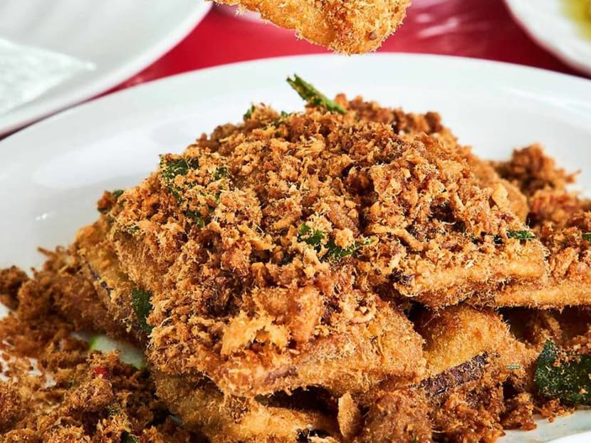 This was a crowd favourite. Thinly sliced rectangles of battered and deep-fried aubergine are stacked on a plate and heaped over with a mound of pork floss, curry leaves, and chilli slices. Eaten hot, the aubergine slices are delightful — crispy and creamy, with a slight and pleasing chewiness we found addictive. We find the pork floss topping to be too sweet but were assured that this is how their patrons like it. Little wonder it’s meant to be a hit with the kids.