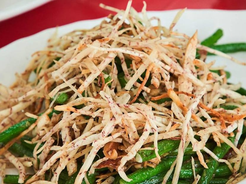 This was the surprise hit of the day. Young green beans are fried with dried cuttlefish, lup cheong, cai poh and topped with a scattering of fried yam strips. The beans were perfect — sweet, tender and with a good snap when bitten into, their freshness a perfect foil for the lovely preserved flavours of the lup cheong and cai poh.