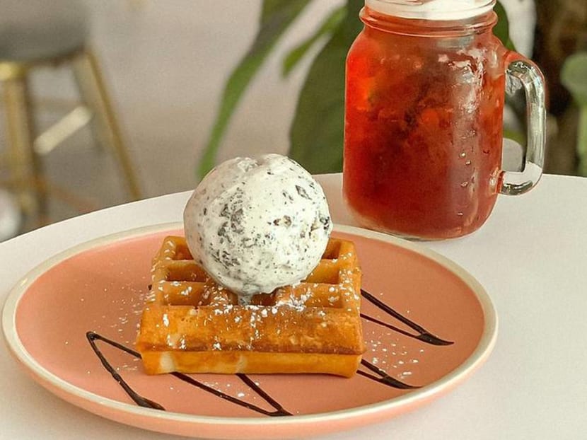 Choa Chu Kang ice cream parlour Hey Sugar is all decked out in pink, and serves treats that are just as sweet. It offers a $9.90 all-day dessert set where you can get a scoop of ice cream on house-made waffles, and a tea beverage.