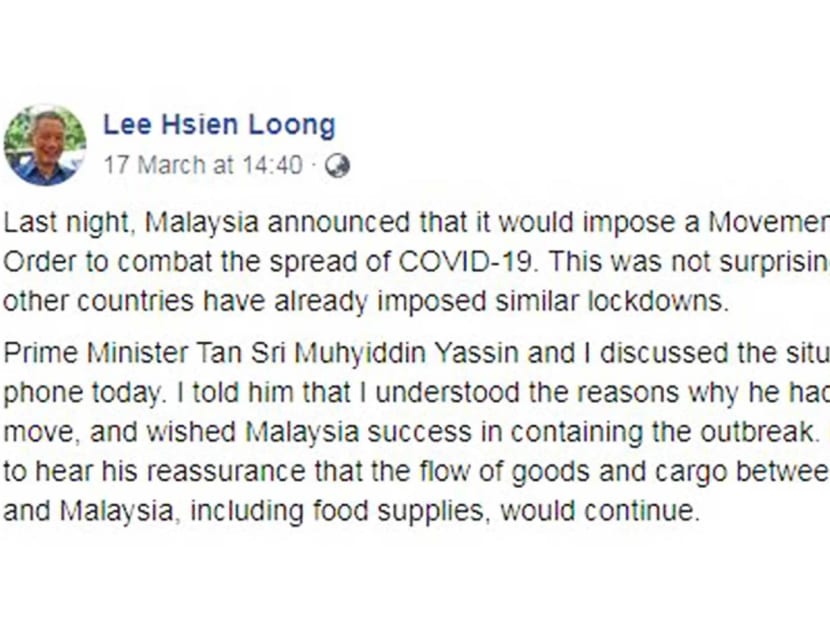 Prime Minister Lee Hsien Loong has also assured Singaporeans in a Facebook post that he was in touch with Malaysia’s PM Tan Sri Muhyiddin Yassin, who said that “the flow of goods and cargo between Singapore and Malaysia, including food supplies, would continue”. Channel NewsAsia also reports that the flow of cargo from Malaysia to Singapore was undisrupted, even on the first day of the restricted movement order.