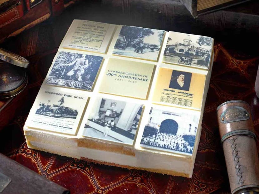 If you fancy a cake that comes with a lesson on Singapore’s history, this is it. The 1kg white chocolate-covered cake comes in four different flavours – durian mousse, gula melaka, coffee and pandan, which is spread out over nine cake ‘squares’, each topped by a piece of white chocolate mosaic printed with historical scenes of Singapore and Goodwood Park Hotel. Kinda like, er, a cake version of an Instagram grid. Only 200 cakes available, and you have to order at least five days in advance.