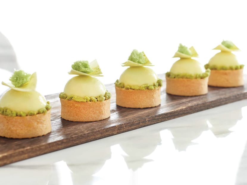 Prefer durian in small doses? This dainty mod take on the traditional mont blanc dessert has a white chocolate dome stuffed with D24 durian pulp, matcha mousse and chestnut mousse. It’s then topped with an Insta-worthy sliver of white chocolate tuile and matcha sponge cake.