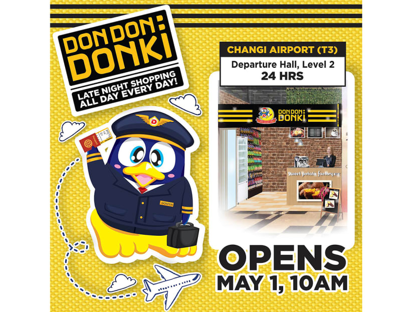 Japanese discount chain Don Don Donki is opening their fourth outlet at Changi Airport’s Terminal 3 departure hall at 10am tomorrow (May 1).