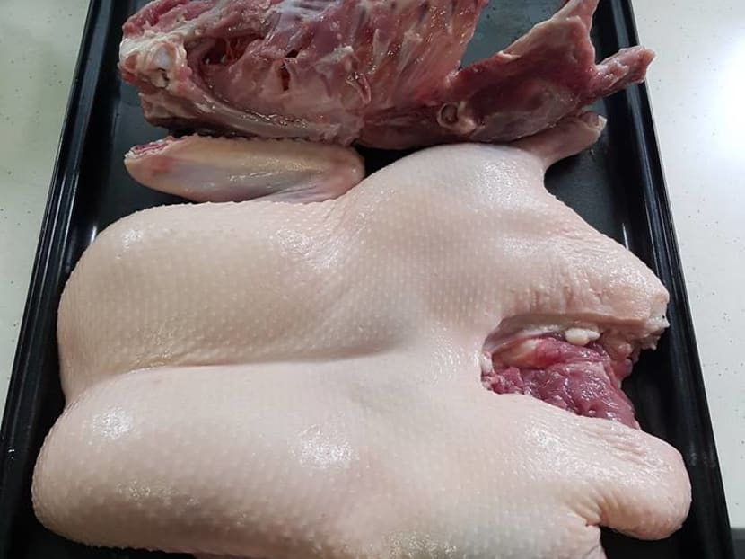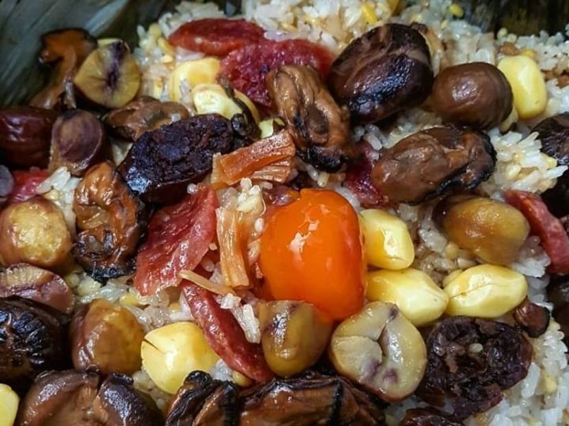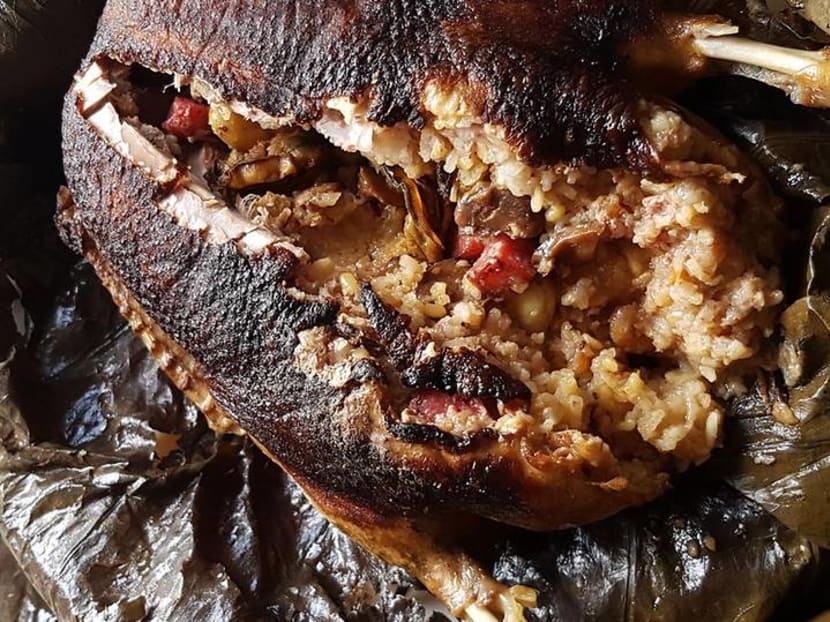 The 43-year-old freelance writer, who had a year-long stint as producer at CNA 20 years ago, found herself with less work than usual while being cooped up at home during the Circuit Breaker. Not one to keep idle, the enthusiastic home cook who used to cook for friends every other week decided to introduce her cooking to a larger audience. The Eight Treasure Duck — a Chinese classic that features a whole bird, oftentimes deboned and stuffed with a variety of fillings — is a dish that has been her signature party dish since 2013. The ducks sold at restaurants are usually cooked naked, but Sylvia’s rendition is wrapped in a lotus leaf, inspired by bak changs eaten during Dragon Boat Festival.