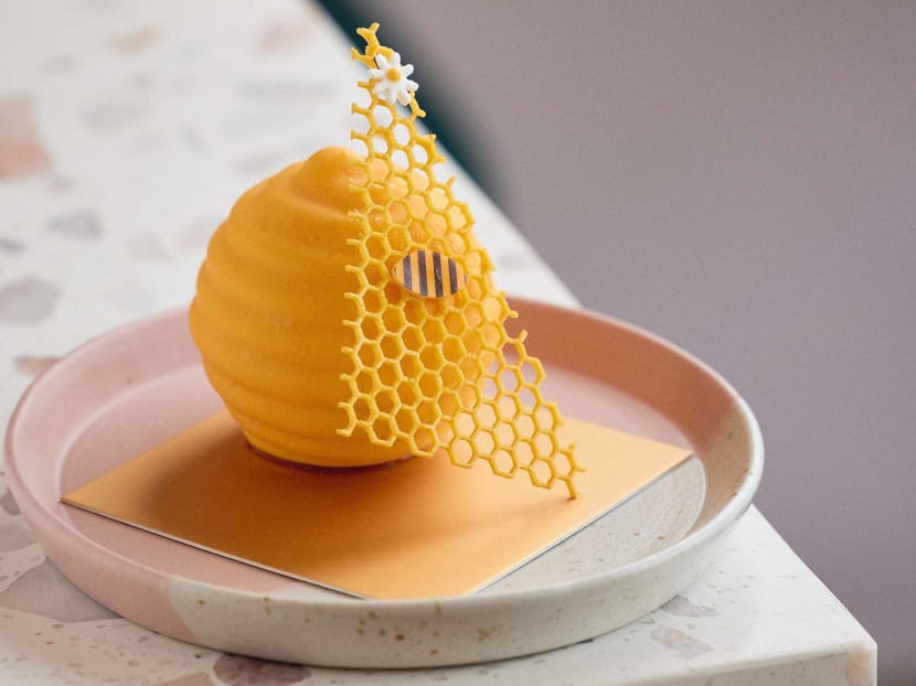 We like the contrasting textures of this dessert, from the white chocolate shell and jellied lemon thyme and litchi honey, to the wafer-like honeycomb tuile that it is crowned with. Also within this yellow orb is a light lemon sponge encased in a creamy honey parfait. Flavour-wise, it has a sharp lemony zing, which is great for lemon lovers.