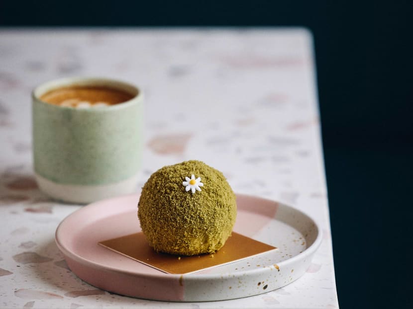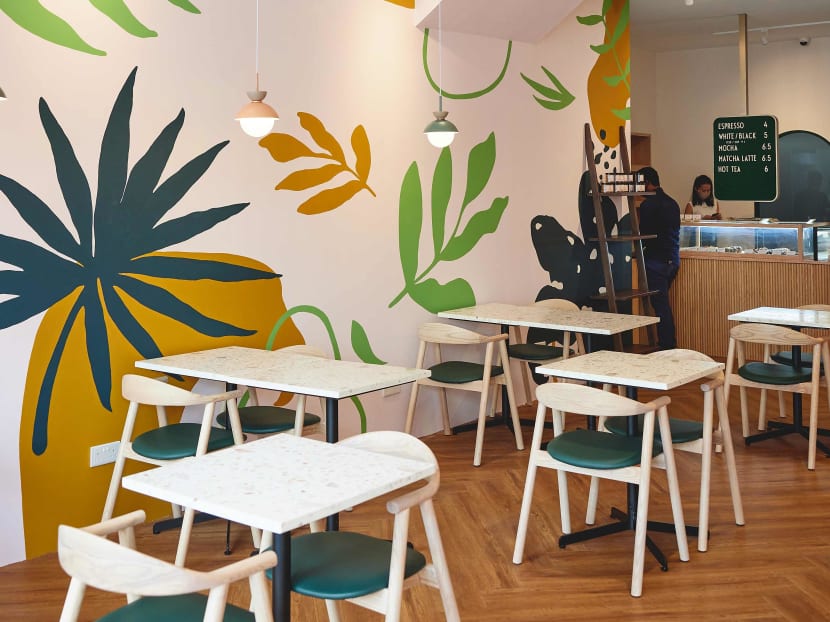 Fast forward a year, and the new Tigerlily Patisserie is literally the brand come to life in a shophouse space filled with just 12 tables. The spacious café sports a quirky, modern palette of light wood, marigold and lime leaf, accented by pretty terrazzo tables speckled with oyster and pink. One wall features an abstract mural of leaves and flowers reflecting the botanical elements that Maxine likes to use in her bakes. The vibe is young and hip, with comfy seats that make it easy to linger over your coffee and cake. It’s only been three days since it opened and already the cafe has seen queues during peak hours in the mornings and at teatime.
