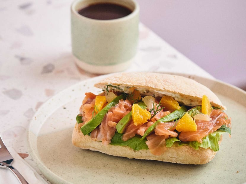 This pretty-as-a-picture ciabatta sandwich has all the Scandinavian feels. It’s filled with lovely slivers of salmon that are cured for a week in a mixture of citrus juices, mustard and dill so that their flavours are fresh and pronounced. The slices of jade-hued avocado temper the fish’s deep savouriness, along with tiny segments of fresh orange and lemon, and sprigs of dill. The dill and cucumber tzatziki, slathered on the tender slabs of ciabatta, add to this hearty sandwich’s fresh flavours.