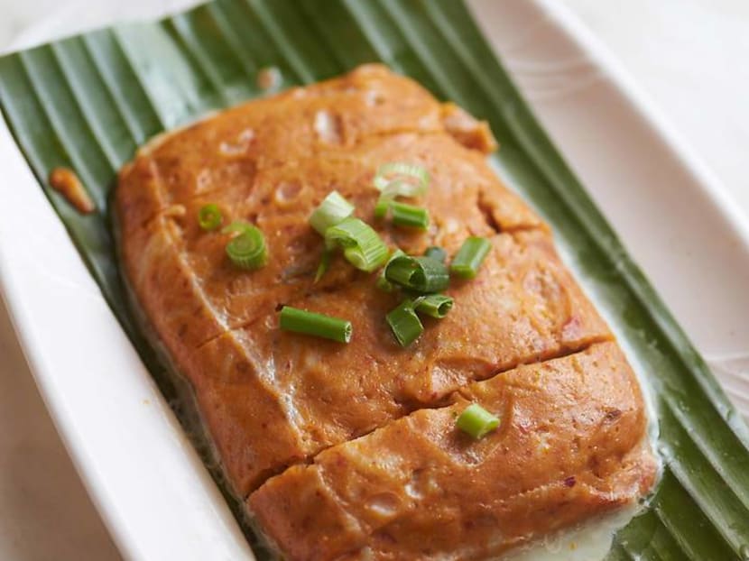 A large slab of mackerel fish otah, made in Singapore by a supplier using a Muar recipe. It’s too mushy and bland for our liking, sadly.
