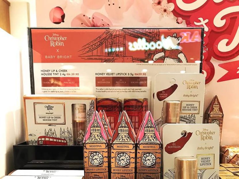 While the shop mostly sells foodstuff, it also stocks a range of toiletries like travel-sized shampoos, plus a shelf dedicated to a Disney collaboration with Thai make-up brand Baby Bright, which has Winnie-the-Pooh-themed lipsticks going for RM39.90 ($13.25) each.