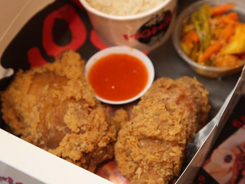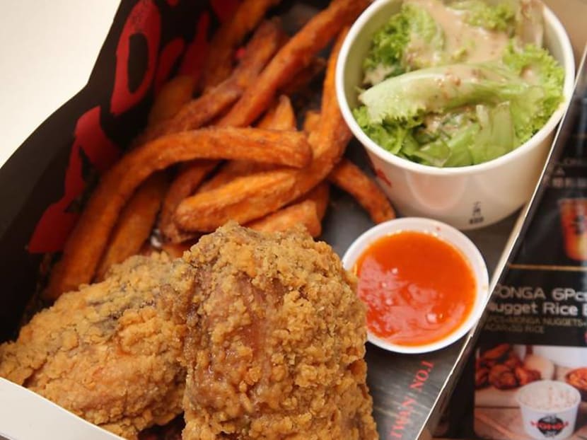 KFC has its two-piece meal, and Monga has this two-piece combo with its Crispy Chicken, plus your choice of French fries or sweet potato fries, a lettuce salad with sesame dressing and a soda beverage. We suppose it’s marginally healthier if you order your meal with sweet potato fries and finish the salad, but it’s frankly not as satisfying as chowing down on KFC’s creamy coleslaw and whipped potato sides. We suggest ordering the chicken rice box instead — the rice is worthier of the extra calories.