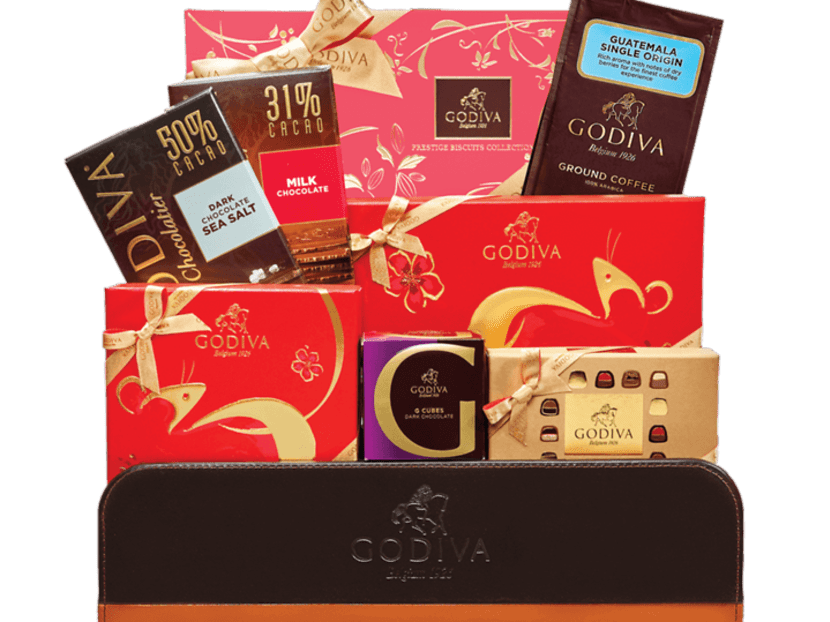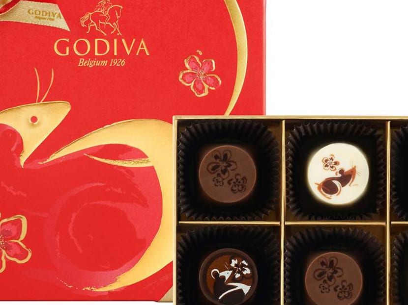 Godiva has also launched gift boxes for the festive Lunar New Year season that feature a mix of their new CNY flavours — Pecan Praline, Rice Crisp Milk Chocolate, and Lemon Ganache White Chocolate — as well as their signature pralines and Cube Truffles. The sweet treats come in limited-edition red and gold boxes with a rat motif. Check out the Chinese New Year Chocolate Gift Box (from $58 for nine pieces) or Delight Hamper ($270) stuffed with goodies such as the Dark Chocolate G Cubes Truffles and 72% Dark Chocolate Almond Tablet.