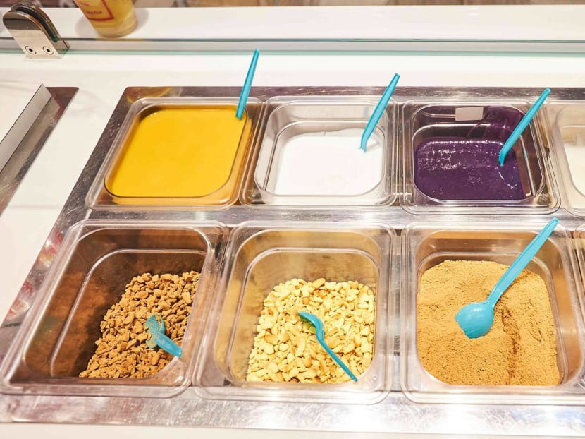 There are five types of mango soft-serve desserts and two mango-based shakes offered here, including a Singapore-exclusive Mango Coconut soft serve cup. The flavours here are fixed, so you can’t customise your toppings like you’re at a froyo shop.