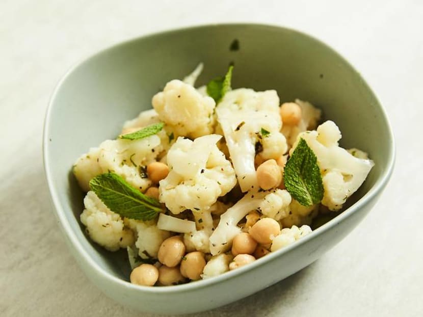 At first glance, the Cauliflower and Chickpea Salad looks rather plain. But the salad is surprisingly yummy — crisp overnight-marinated cauliflowers, a zesty well-balanced dressing, and creamy chickpeas to round it off.