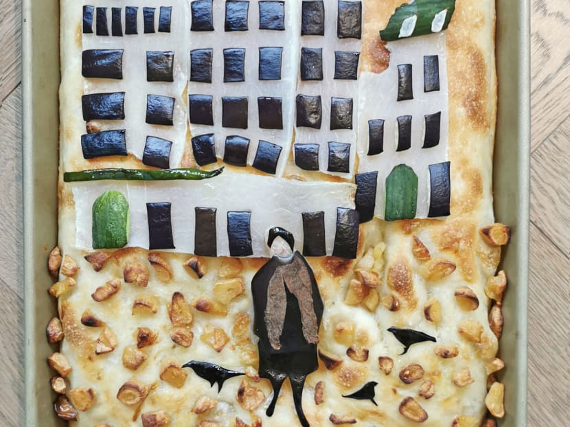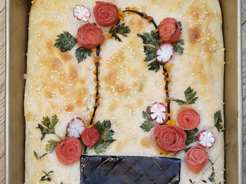 The standard garden-themed focaccia (above) will set you back $40, with any bespoke commissions starting at $60 onwards, depending on the complexity of the design. Every order comes with thyme and bay leaf-scented garlic confit oil.