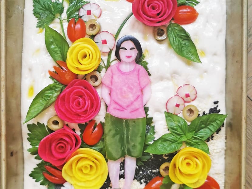 You’ve seen cakes printed with images of people — now, how would you like your mug replicated on a slab of focaccia, using vegetables instead of edible ink or paint? Home baker, Maggie Tum, 47, has taken her focaccia artworks further than the usual garden trend with a simple yet endlessly amusing idea – reproducing photos of people on bread. She parlayed her artistic expertise as a motion and digital designer with two decades of experience into bready art. These doughy masterpieces starring the Italian flatbread are sold via her Instagram biz, @whenmommybakes