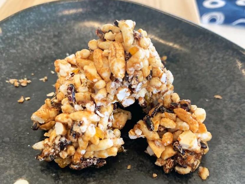 NUS computer science undergrad Sharan Thangavel, 23, got the idea to make this breakfast-friendly snack after a visit to a Thai orphanage, where he was inspired by Thai ingredients like mangoes stocked in their kitchen.