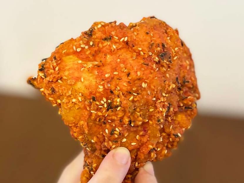 As soon as we opened the box, we were instantly hit with the savoury aroma of soy sauce. The chicken breast and thigh are coated with fiery red breading, which gets its hue from “natural colouring from hibiscus and paprika”, and topped with a sprinkling of fragrant seaweed bits and sesame seeds.