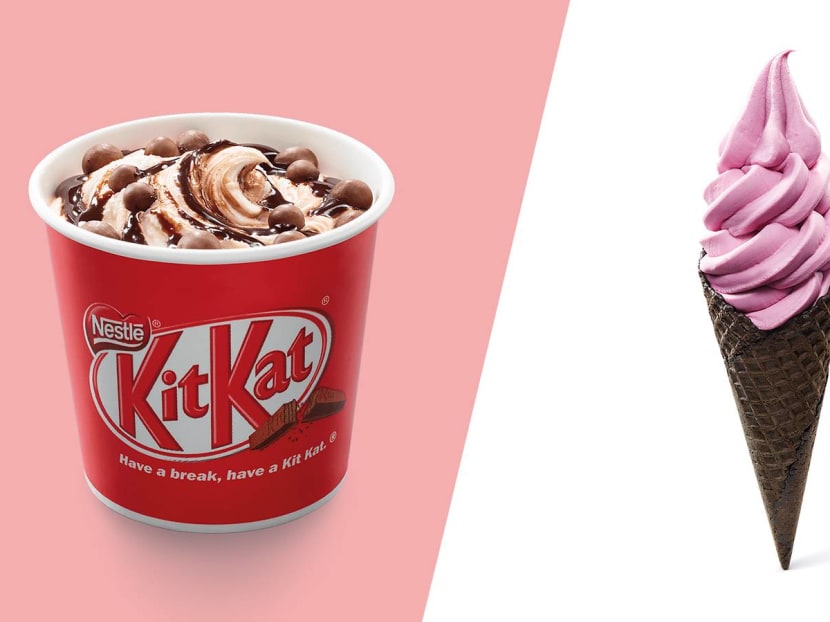 The gods of the Golden Arches have heard our prayers and as of yesterday, have bestowed us with the Insta-worthy Purple Sweet Potato Waffle Cone, previously available only in Hong Kong. However, unlike the HK version, Singapore’s iteration of the pretty lilac-hued soft-serve ice cream sits atop a plain cocoa-flavoured cone instead of a sexier Oreo-speckled one. Also making its debut here is the Kit Kat McFlurry, which combines vanilla soft-serve ice cream with chocolate sauce and bite-sized Kit Kat spheres. Are these two fun new desserts worth the calories? We dig in and tell you.