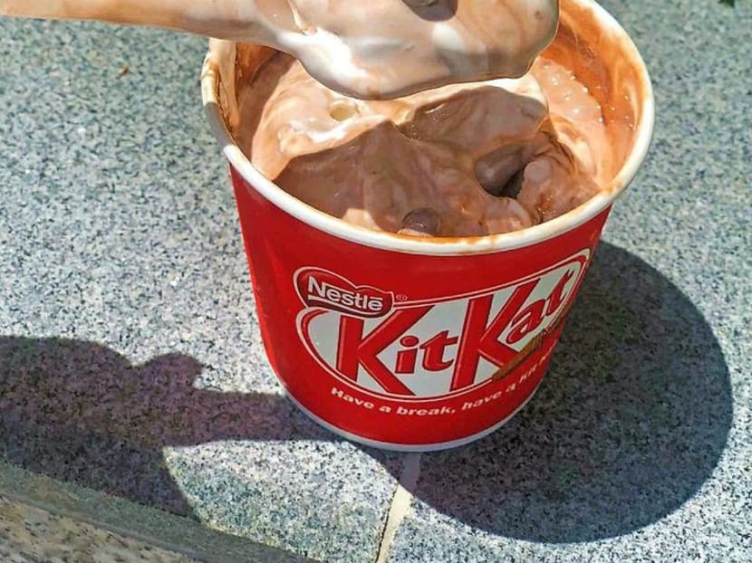 Plus they were soggy and tasted like nondescript chocolate-coated wafer balls from a random mama shop. Moreover, the whole thing was blitzed with chocolate fudge sauce, which made it too sweet. Quite disappointing, since we love Kit Kat.