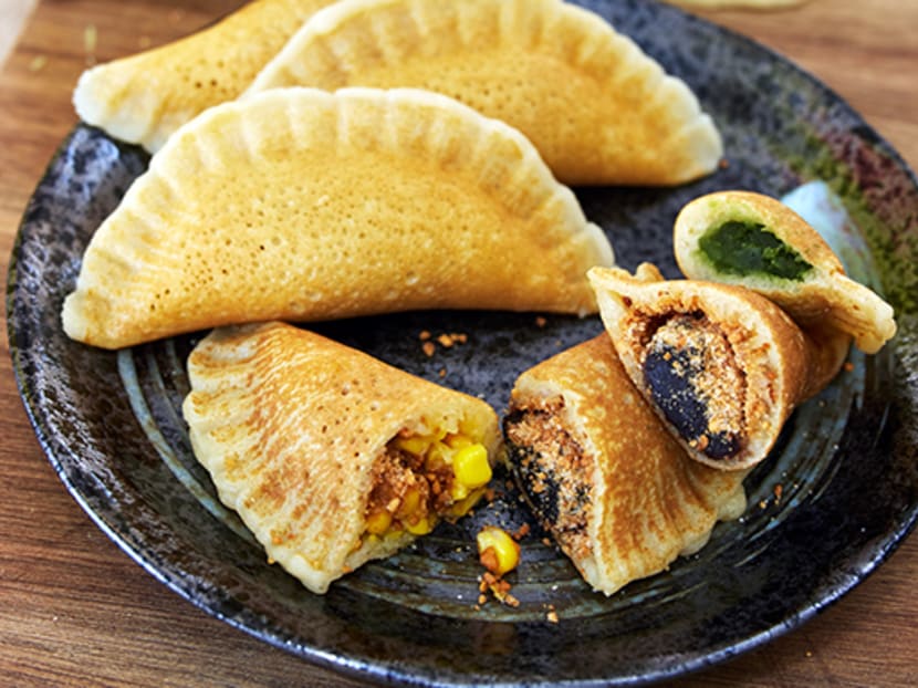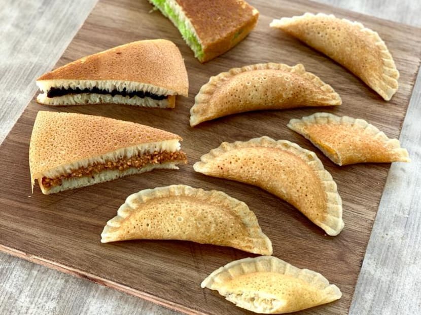 He also serves regular min jiang kueh that he calls Old-Skool Slices (from $1 a slice), which comes in conventional flavours like Peanut ($1), Red Bean ($1), pandan-flavoured Coconut ($1.20) and mod ones like Crunchy Peanut Butter ($1.20).