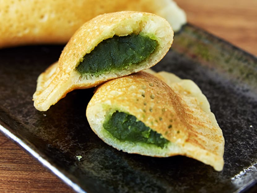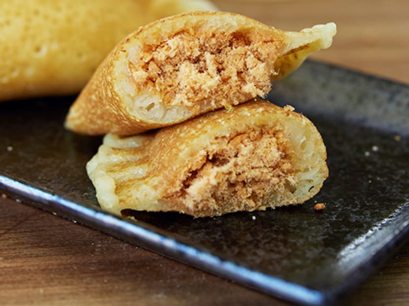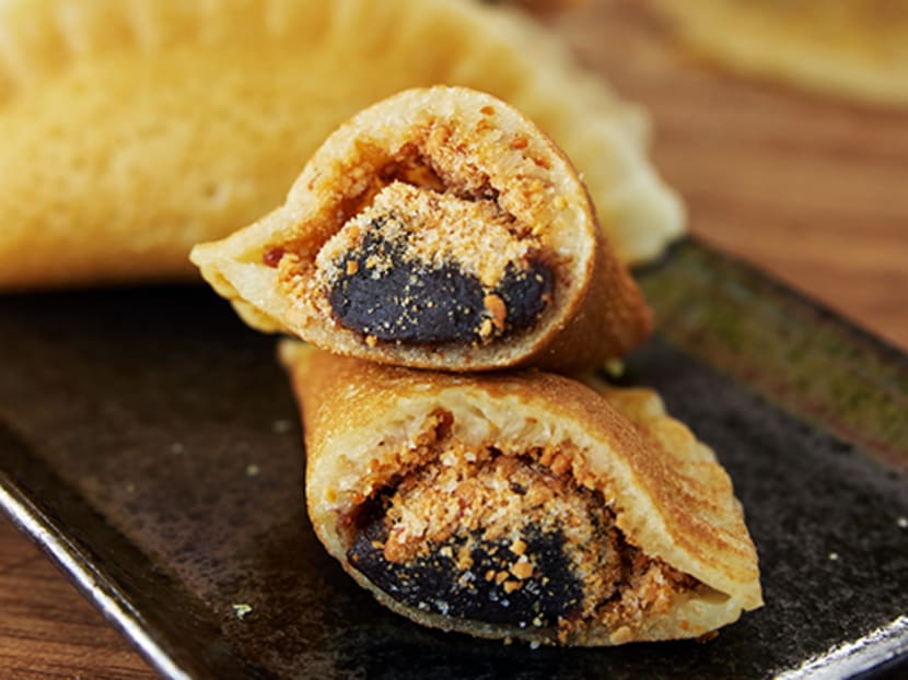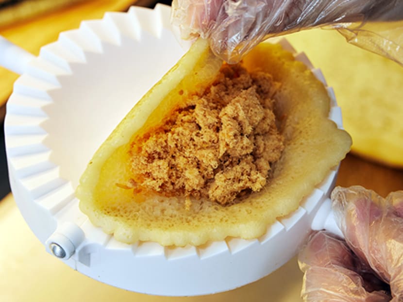 Bu Bu Gao Sheng’s unique offering is its min jiang kueh Puffs (from $1 each), which consist of a thin filling-stuffed pancake ‘kiap-ed’ into the shape of a curry puff using a plastic mould.