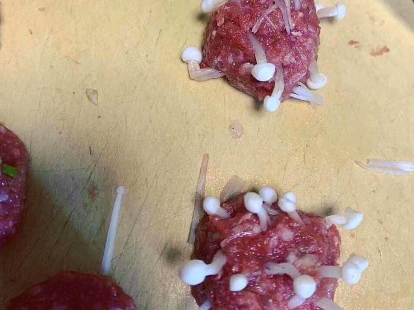 Another netizen also concocted ‘COVID-19 meatballs’ by pushing enoki mushrooms into handmade minced beef balls to mimic the virus strain.